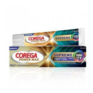 Corega Power Max Supreme Todo en 1 (40 g) es una crema adhesiva para prótesis dentales que ofrece una fijación extra fuerte de hasta 12 horas, gracias a su fórmula avanzada que mejora la estabilidad y evita la entrada de restos de comida. No contiene zinc ni sabor, por lo que no altera el gusto de los alimentos. Su textura cremosa permite una aplicación precisa y cómoda, ayudando a reducir la irritación en las encías. Es ideal para quienes buscan seguridad, confort y confianza en el uso diario de su prótesis dental.
