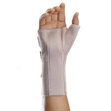 Introduce la mano por el interior de la muñequera, asegurándote de que el pulgar quede bien posicionado en la férula.Composición